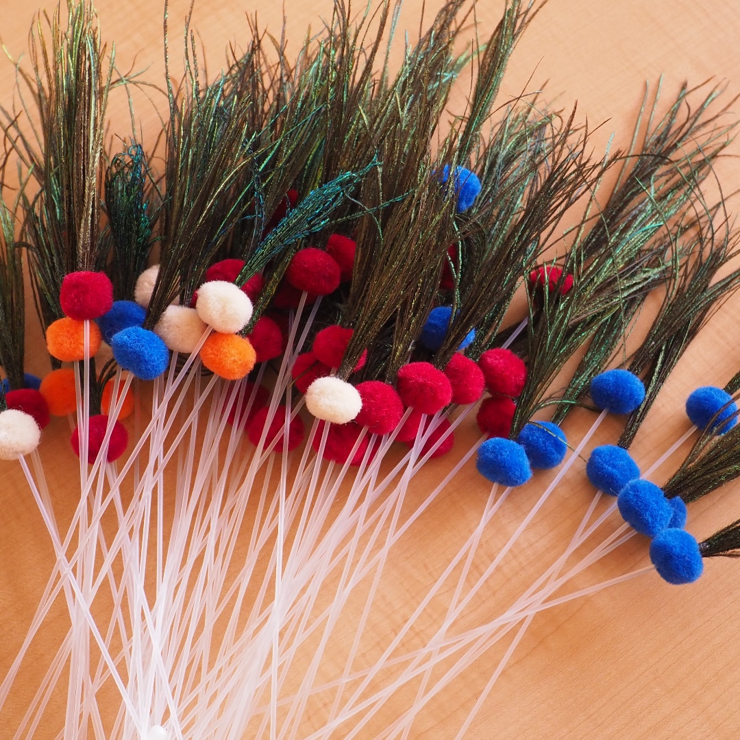 くじゃくの羽根、ボンボン、樹脂
