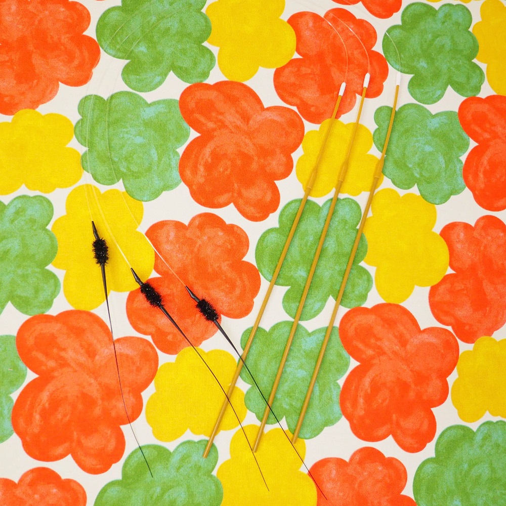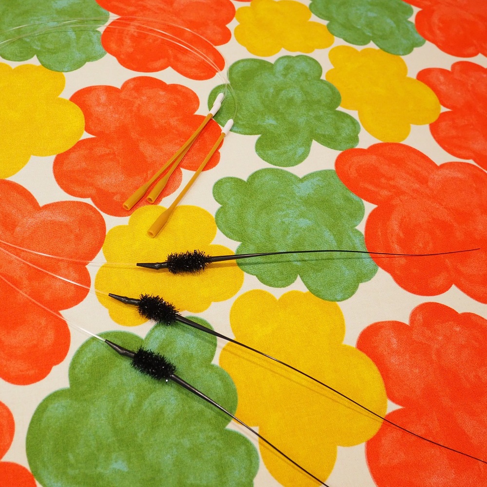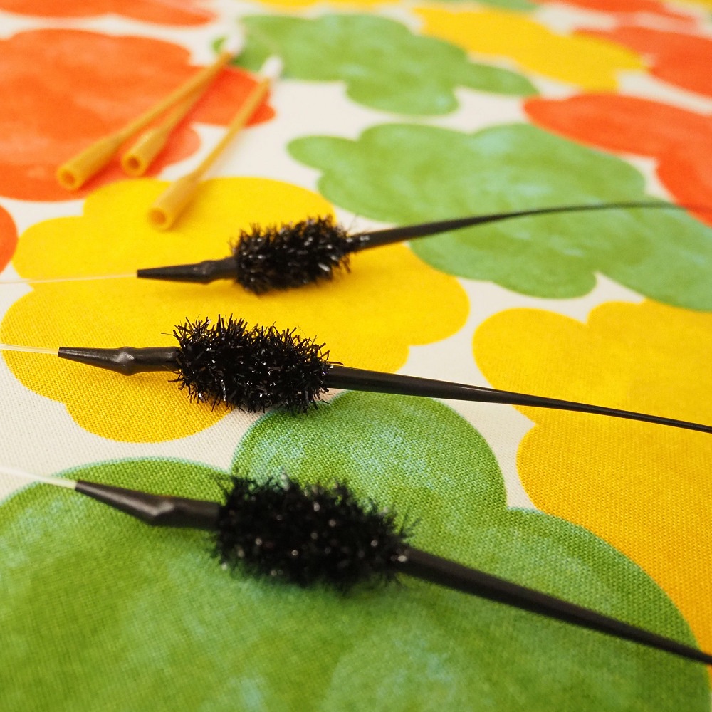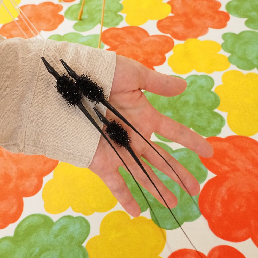 毛玉の先に黒いヒゲがついたおもちゃです。