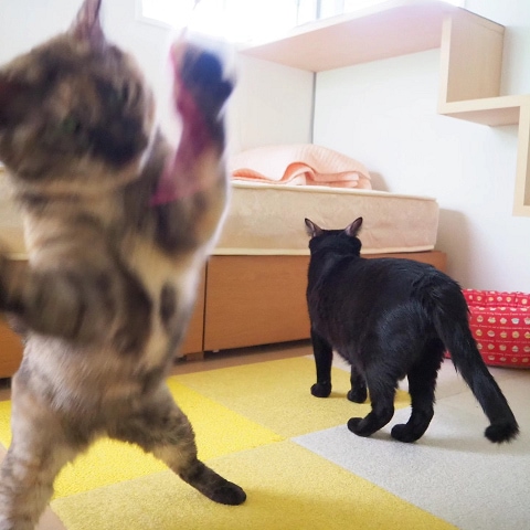 ソファーやベッドの上で動かしてあげると喜んで走って追いかけてきます。